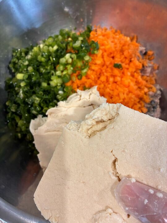 サバ缶を使用し、豆腐やねぎ、人参など入れてふんわり揚げてます♪