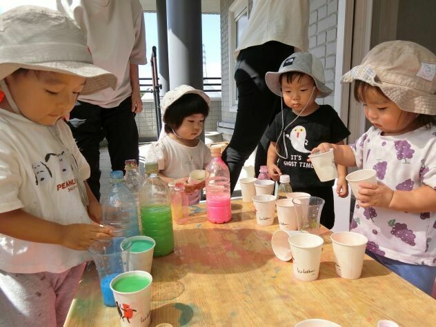 🍂秋の戸外遊びが楽しい季節に──テラスで色水遊びを楽しみました