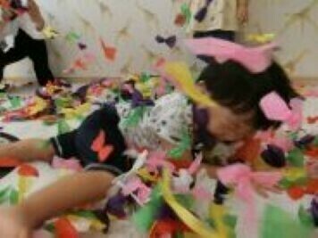保育士の出し物では、お花紙を使った遊びを楽しみました。