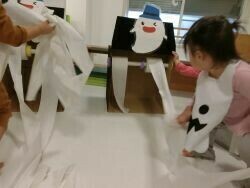 トイレットペーパーのひっぱりあそびや、クモの巣の的当てゲームで大盛り上がり🕸️✨