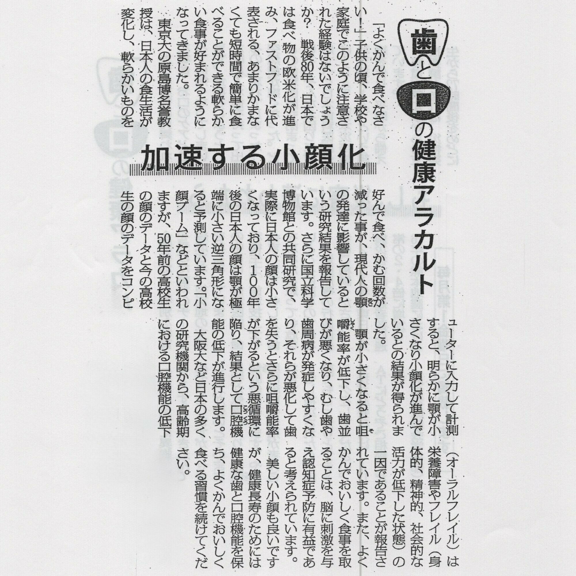 先日、毎日新聞の「歯と口の健康アラカルト」にて 「加速する小顔化」という記事が掲載されていました。