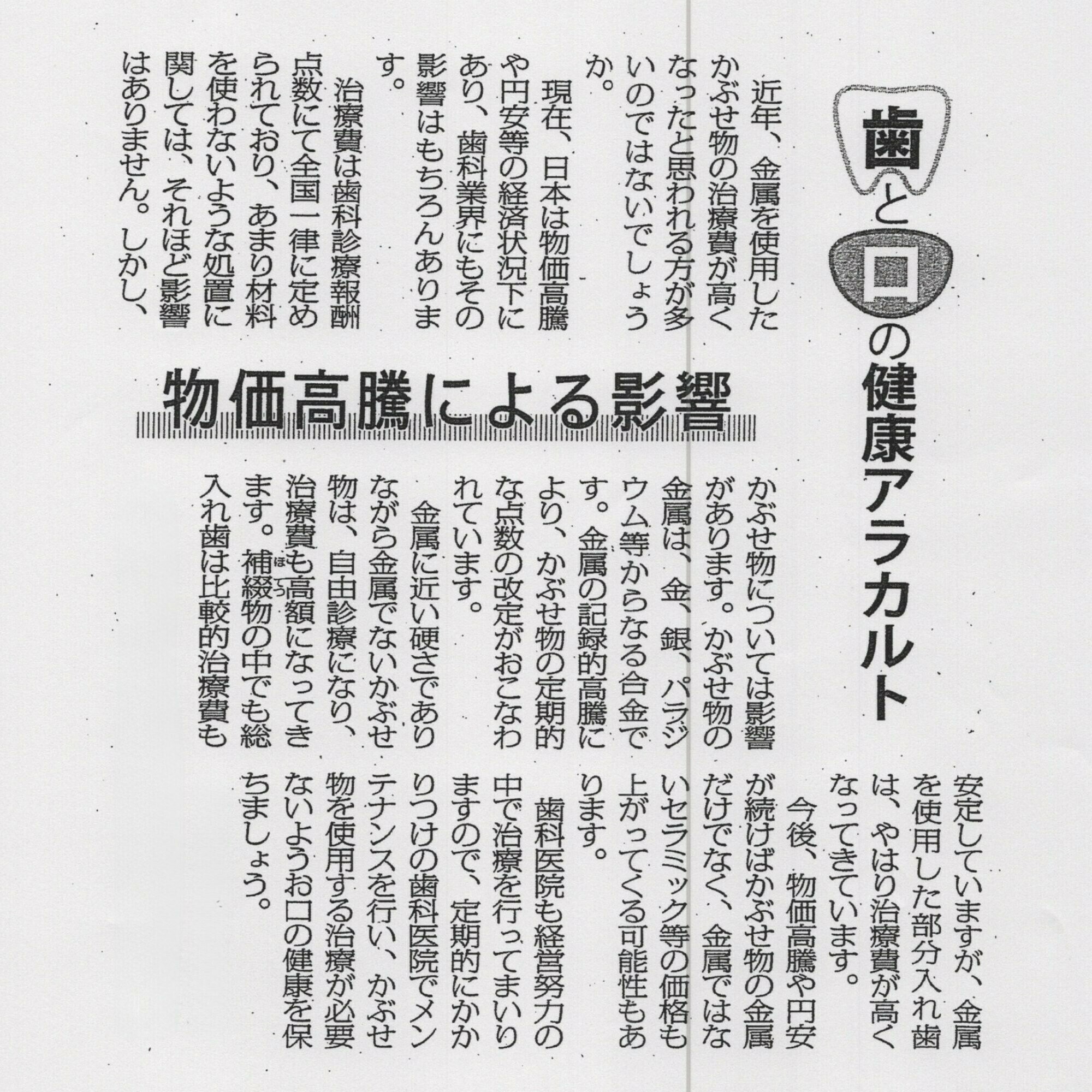 最近、ニュースでも頻繁に取り上げられている「物価高騰」ですが、実は歯科治療にも確実に影響が出ています。