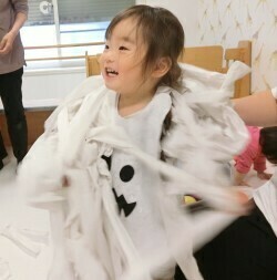 トイレットペーパーのひっぱりあそびや、クモの巣の的当てゲームで大盛り上がり🕸️✨
