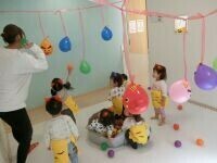 お部屋にはカラフルな風船や飾りが並び、かわいい鬼さんに変身した子どもたちが集まりました。